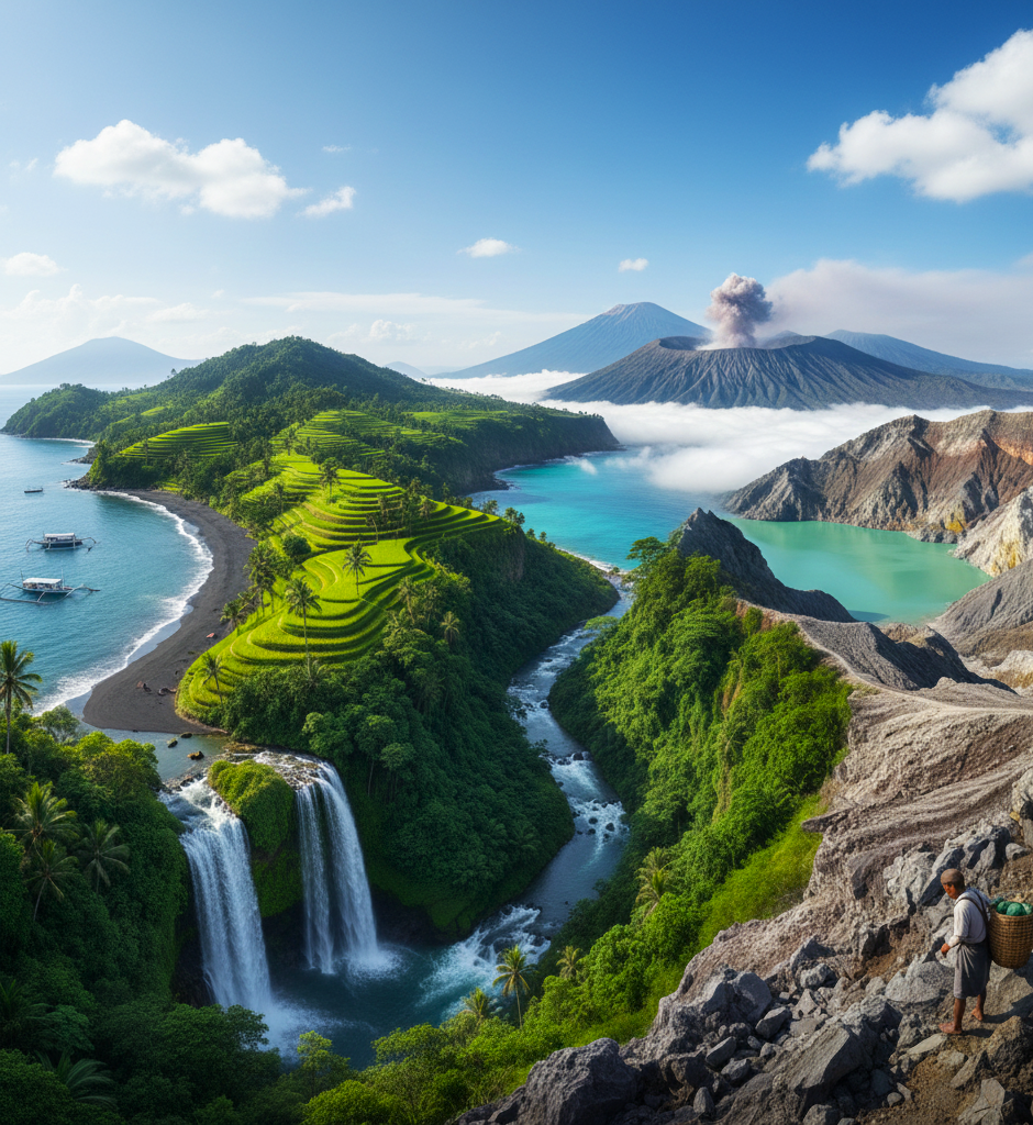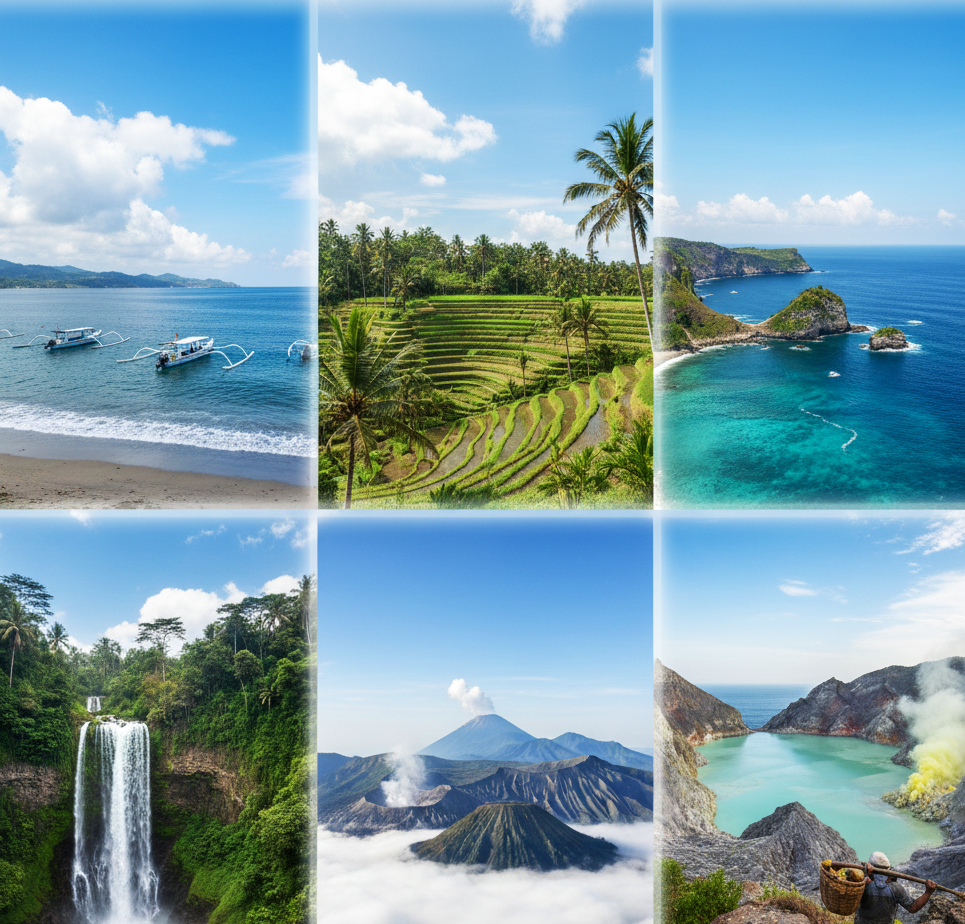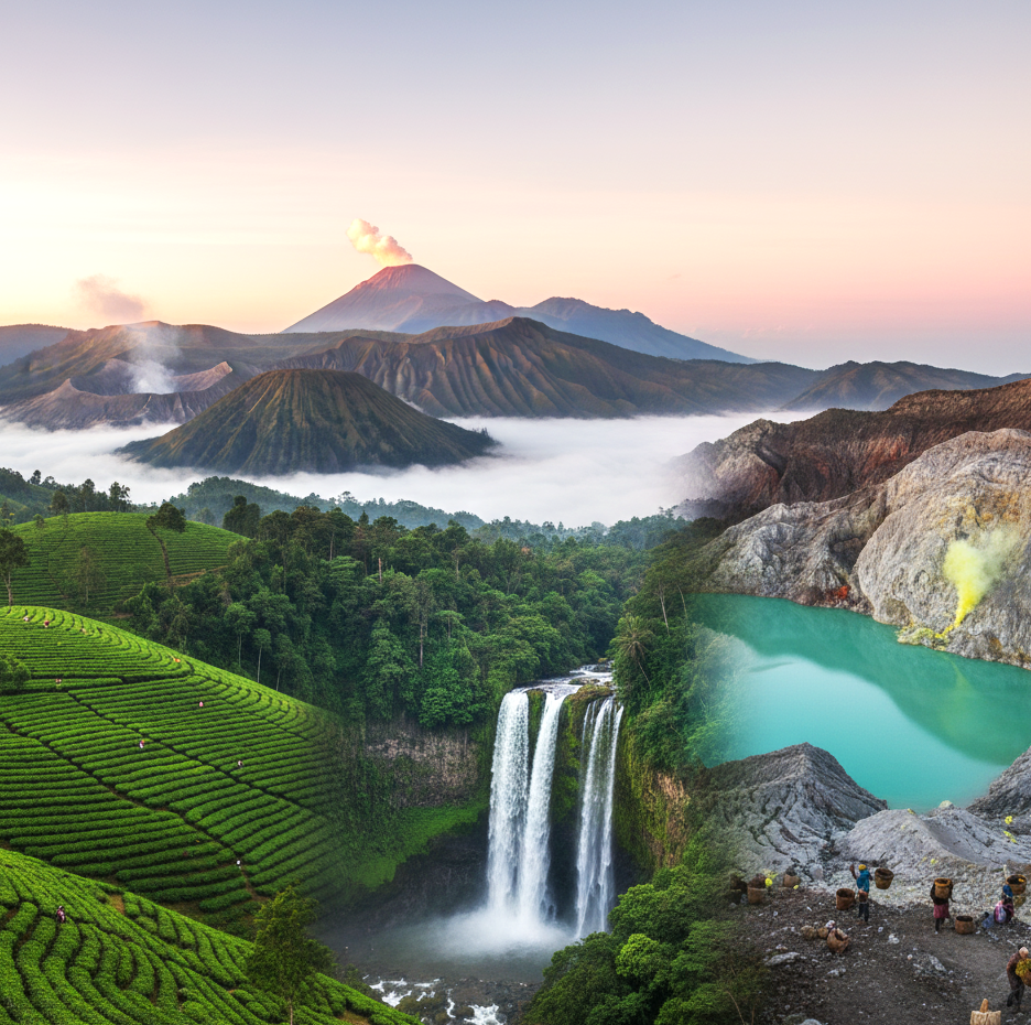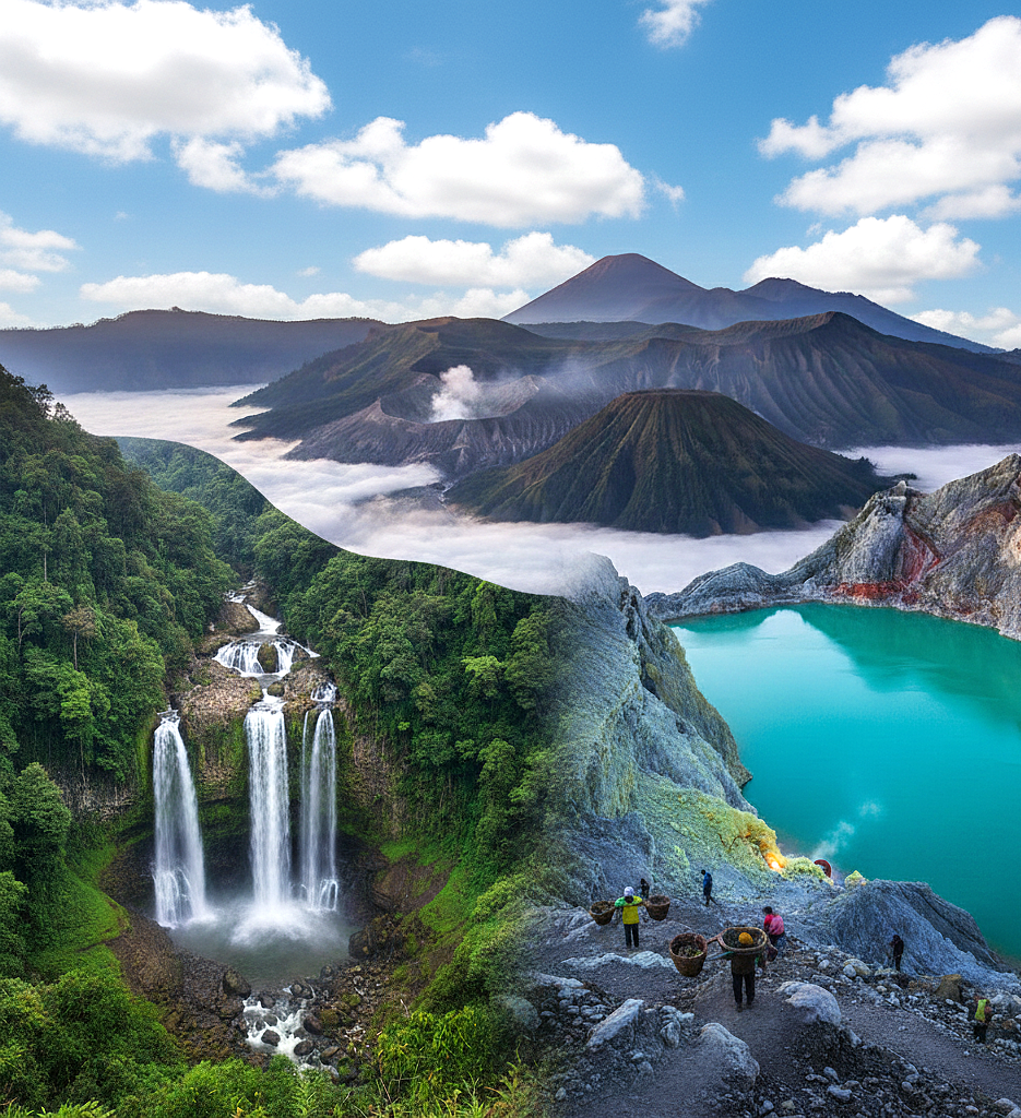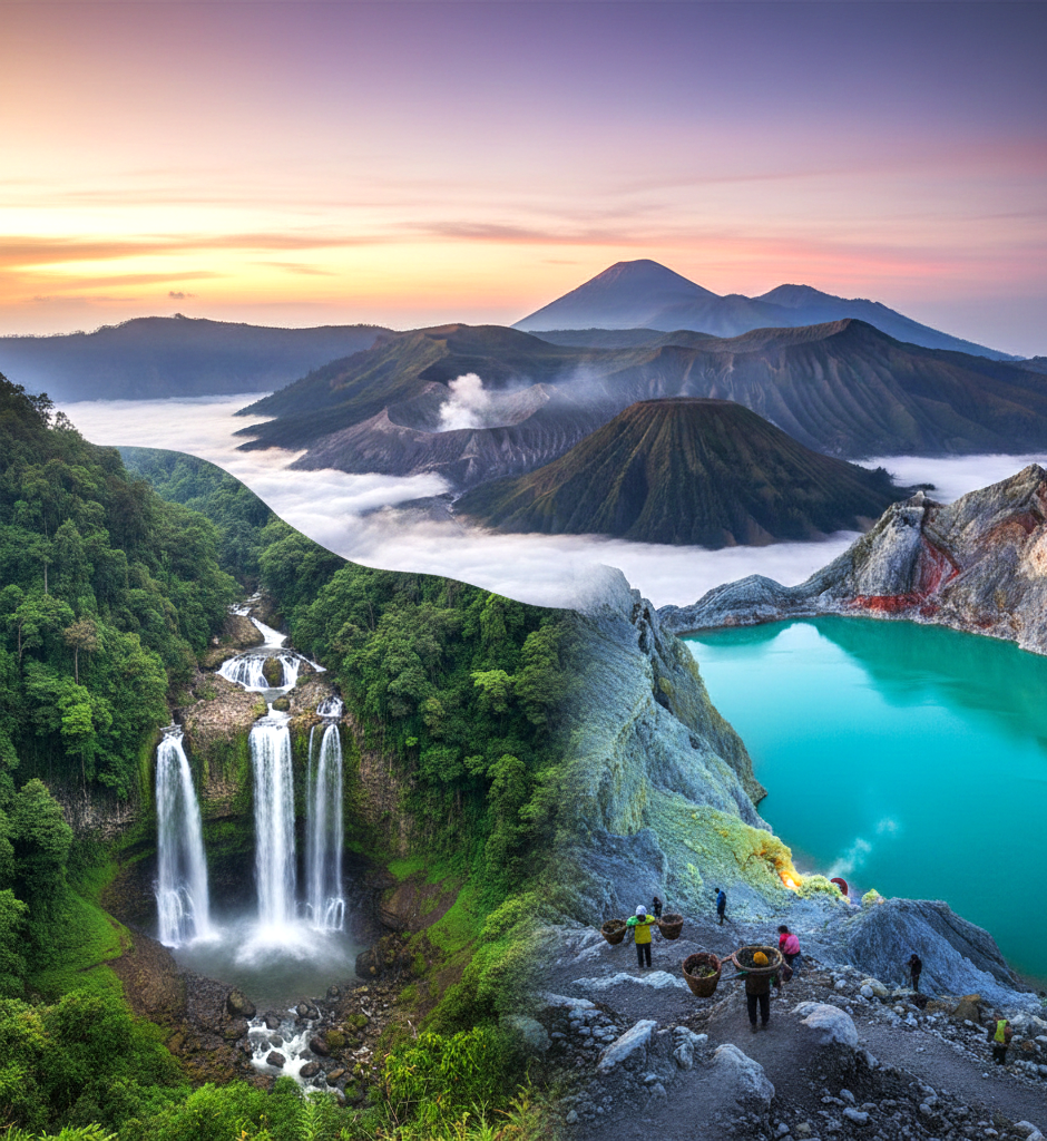 The complete East Java adventure: Tumpak Sewu Waterfall, Mount Bromo, and the Ijen Blue Fire phenomenon.